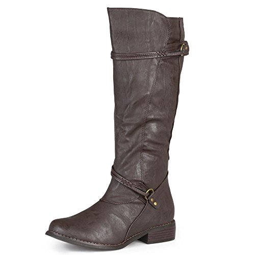Brinley Co. Womens Regular, Wide Calf and Extra Wide Calf Tall Buckle Riding Boots Brown, 11 Regular US