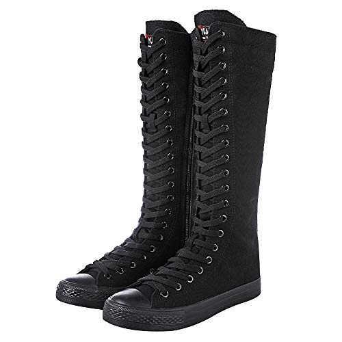 Momuk Women's Knee High Fashion Lace Up Canvas Zip Boots Girls Fancy School Shoes Size 8 B(M) US Black