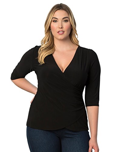 Kiyonna Women's Plus Size Femme Fatale Faux Wrap Top 0X Black Noir