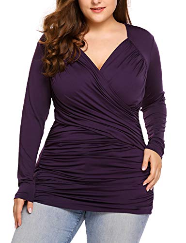IN'VOLAND Womens Plus Size Blouse Long Sleeve V-Neck Ruched Blouse Tops Cross Front Shirt Wrap Front Drape Dolman Top 18W-24W