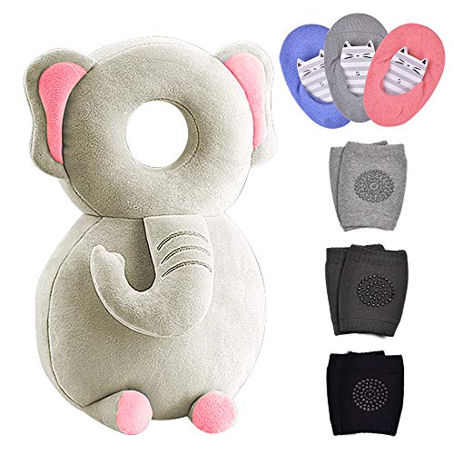 7 Pack|Baby Head Protector 1 & Baby Knee Pads for Crawling 3 Pairs & Baby Socks 3 Pairs,Baby Walking Suit, Elephant