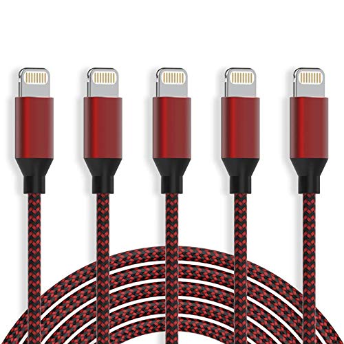 HOVAMP MFi Certified 5Pack[6-6-6-6-6ft] Nylon Braided iPhone Charger Lightning Cable Fast Charging & Syncing Long Cord Compatible iPhone 11Pro Max/11Pro/11/XS/Max/XR/X/8/8P/7/7P and More-Black&Red