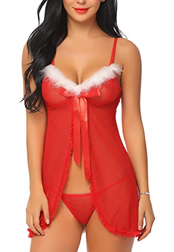 ALLUROMAN Lingerie for Women Christmas Babydoll Sexy Santa Sleepwear