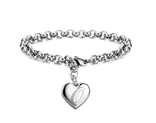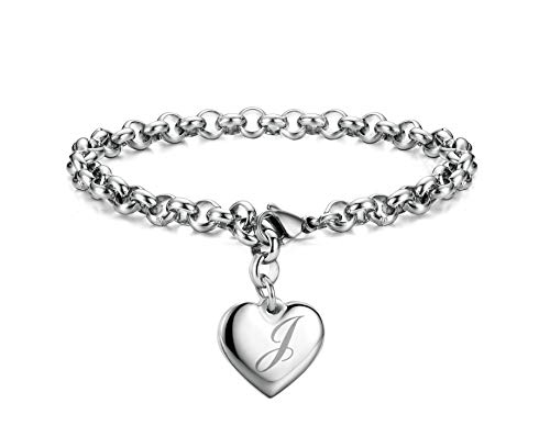 Monily Initial Charm Bracelets Stainless Steel Heart 26 Letters Alphabet Initial Bracelet for Women Jewelry