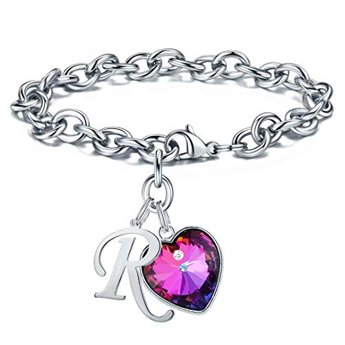 M MOOHAM Heart Initial Bracelets for Women Gifts - Engraved 26 Letters Initial Charms Bracelet Stainless Steel Bracelet Birthday Christmas Jewelry Gift for Women Teen Girls