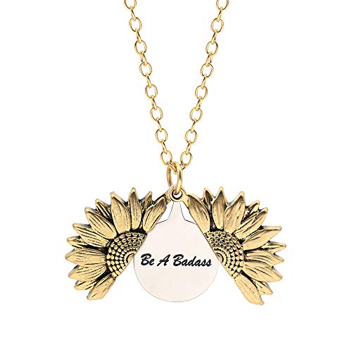 Sloong You Are My Sunshine Engraved Necklace Inspirational Sunflower Locket Necklace Jewelry for Women girlfriend
