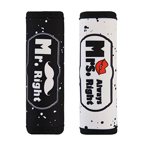 CM Pack of 2 Neoprene Luggage Handle Wrap / Handle Grip / Luggage Identifier for Travel Bag Luggage Suitcase (Mr. & Mrs. Pattern)