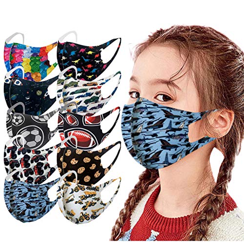 10PCS Kids Disposable Face_Masks,Children's Face Bandanas Multi-Style Cute Print Breathable 3Ply Earloop Face Balaclava