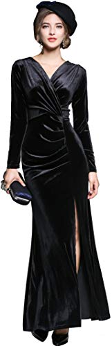 Ababalaya Long Sleeve Wrap Velvet Long Formal Dresses Cocktail Dress, Black, S