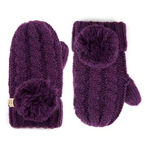 C.C Kids Pompom Ribbed Knit Children Fleece Lining Children Mittens Gloves (MT-23 KIDS) (MT-24 KIDS) (MT-25 KIDS)