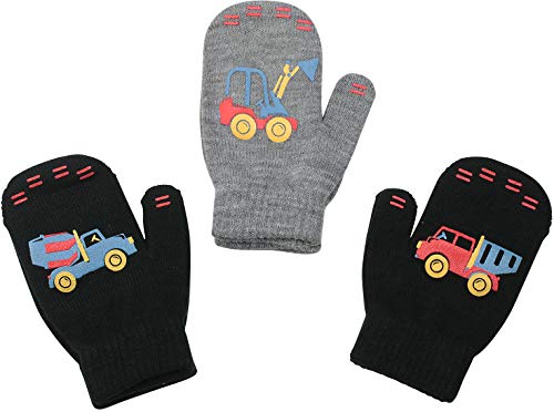 3 Pack - Magic Stretch Winter Mittens for Boys, Kids, Children, & Toddler Toddlers - Dino, Solid Colors
