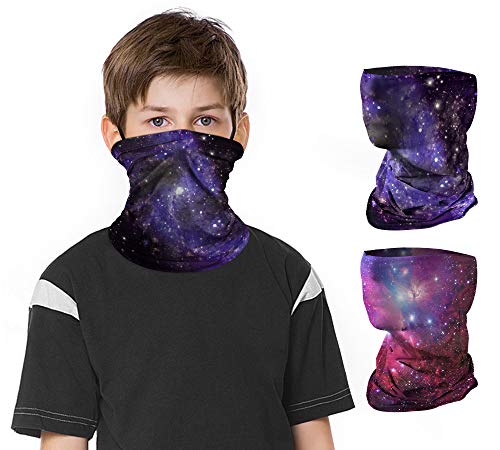 2 PCS Kids Face Mask Neck Gaiters Full-Coverage Bandanas Headband Tube Neck for Boys Girls, School Supplies for Kids(A Galaxy 3, 11-14T/9.0514.17inch)