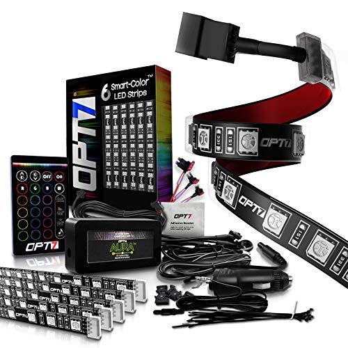 OPT7 Aura Interior Car Lights LED Strip Kit-16+ Smart-Color, Soundsync, Door Assist, Show Patterns, and Remote-Accent Underdash Footwell Floor, 6pc Single Row