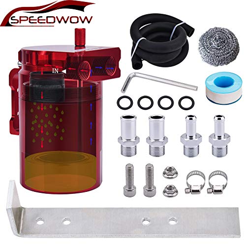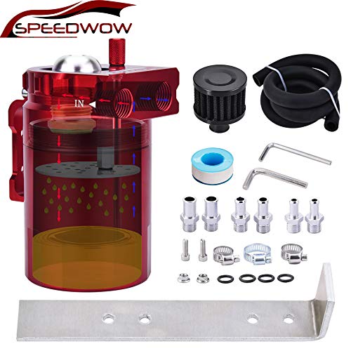 SPEEDWOW Oil Catch Can Tank Filter Baffled With Hose Kit Universal Red