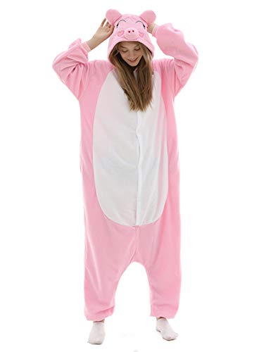 vavalad Adult Pink Pig One Piece Pajamas Halloween Cosplay Animal Christmas Sleepwear Jumpsuit Costume Women Men