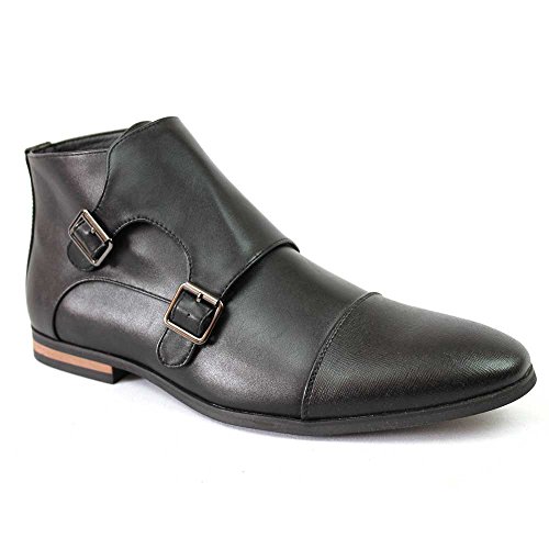 Men's Cap Toe Dotted Monk Strap Dress Boots Double Buckle Azar