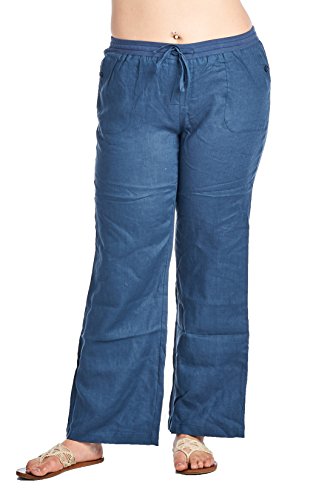 High Style Women's Plus Size Wide Leg 100% Linen Pants with Drawstring Detail (Plus Size)