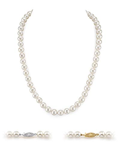 White Freshwater Cultured Pearl Necklace for Women in 18 Inch Length with 14K Gold and AAA Quality - THE PEARL SOURCE