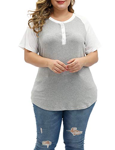 Allegrace Womens Plus Size Tops Short Sleeve Baseball Raglan Tee Shirt V Neck Button Up Henley Shirts
