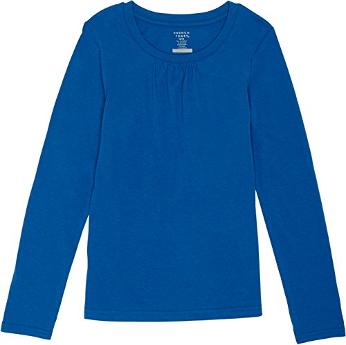 French Toast School Uniform Girls Long Sleeve Crew Neck T-Shirt with Front Gathers