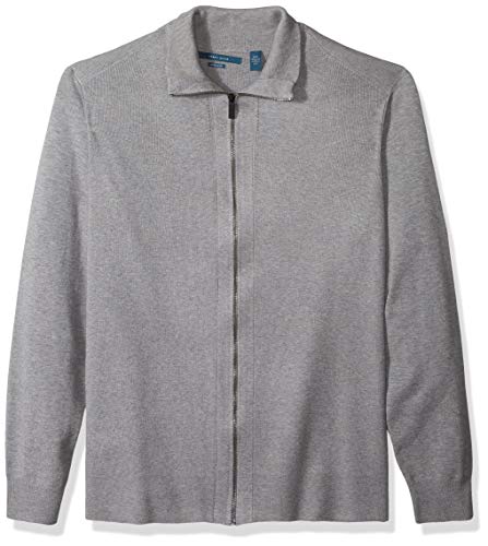 Perry Ellis Men's Big and Tall Solid Rib Full Zip Sweater