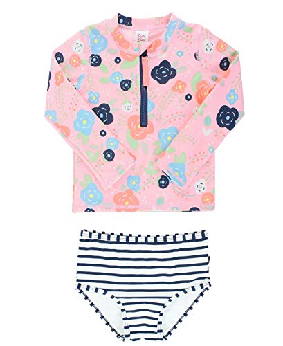 RuffleButts Girls Bouncing Blooms Long Sleeve Zipper Rash Guard Bikini - 6