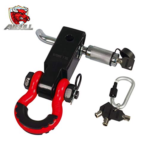 AMBULL Shackle Hitch Receiver 2 Inch, with 3/4 Inch D-Ring Shackle, Locking Pin, 2 Insurance Pins, Heavy Duty Solid Recovery Kit, Red