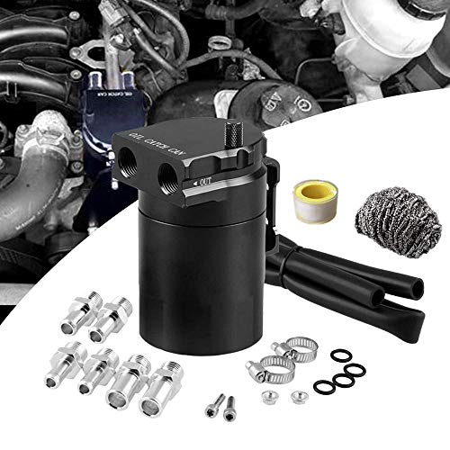 Universal Car Oil Catch Can Kit Reservoir Tank 300ml with Breather Aluminum Compact Dual Cylinder Polish Baffled Engine Air Oil Separator Tank Fit (Black)