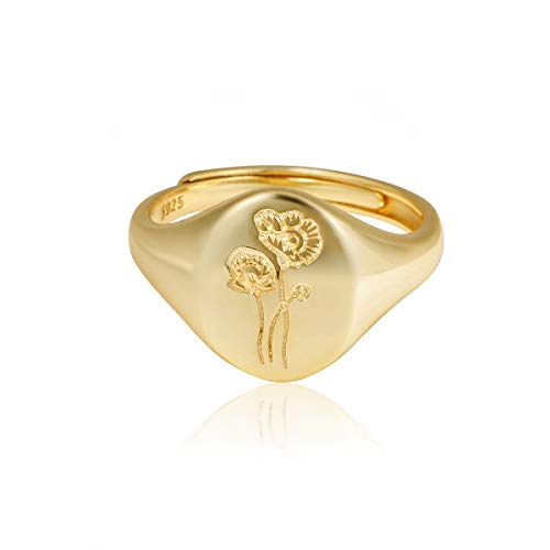 YeGieonr Handmade Flower Signet Ring -18K Gold Over 925 Sterling Silver Adjustable Ring-Minimalistic Statement Ring - Delicate Personalized Jewelry Gift for Women/Girls (Available for Size 6、 7、8、9)