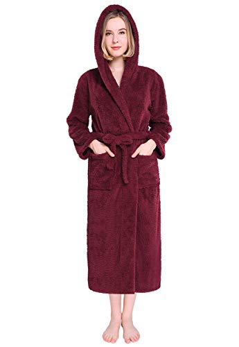 Vislivin Womens Hooded Robes Plush Bathrobe Warm Fleece Robe
