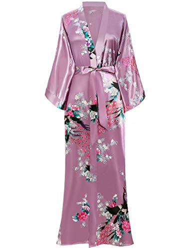 BABEYOND Women's Kimono Robe Long Robes with Peacock and Blossoms Printed Kimono Nightgown