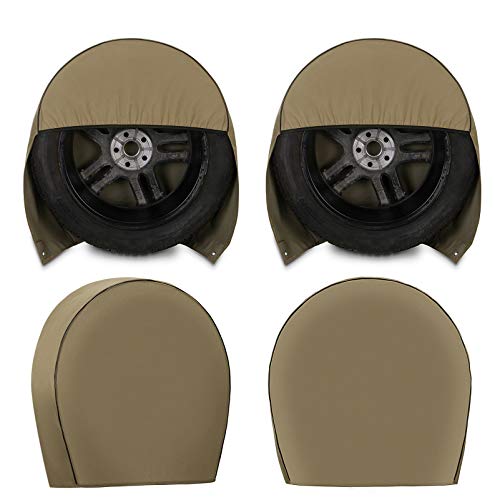 Explore Land Durable Tire Cover Set of 4 - Heavy Duty Tire Wheel Protector for RV, Jeep, Motorhome, SUV, Travel Trailer Fits Tires Diameters 26-28.75 inches (Tan & Khaki)