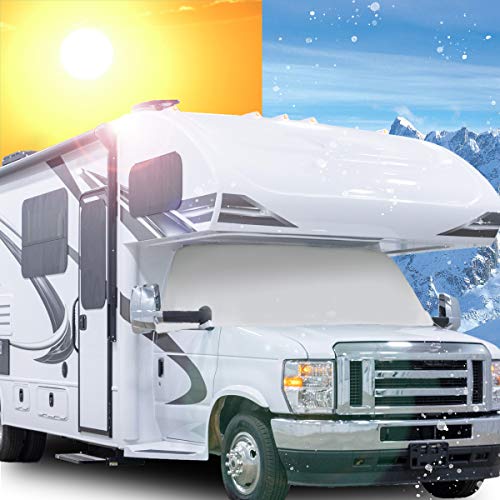 Mofeez RV Class C Ford 1997-2020 Windshield Cover (RV Motorhome with Mirror Cutouts)