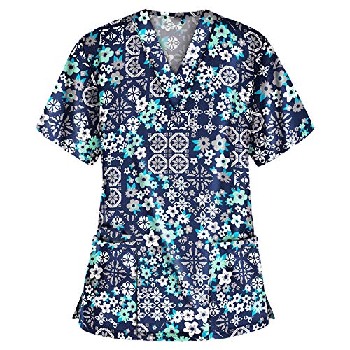 Caopixxzful Women's Tunic V-Neck Nurse_Scrub_Tops Workwear Christmas Graphic Printed Stretch Short Shirt Ladies Holiday Thanksgiving 2021 New Year Trendy Blouse T-Shirts