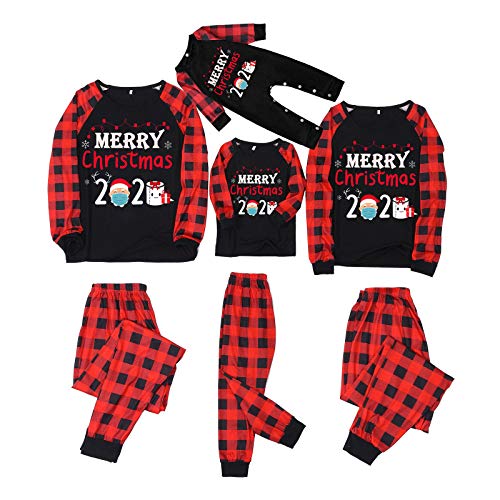 Kuerqi 2020 Quarantine Christmas Pajamas Set for Family, Christmas Family Matching Pajamas Set Red Plaid Reindeer PJS