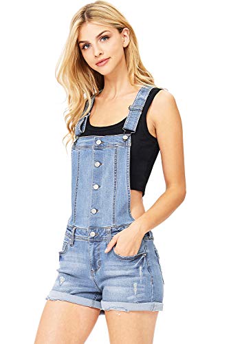 Celebrity Pink Women's Juniors Distressed Denim Shorts Overalls