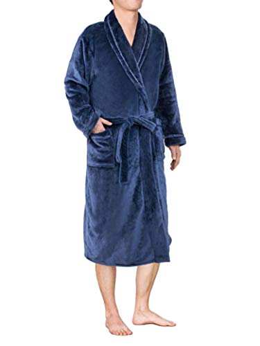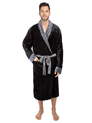 Mens Plush Fleece Robe | Soft, Warm, Spa Bathrobe for Men, Shawl Collar