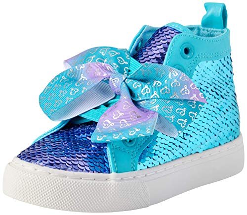 JoJo Siwa Girls' High Top Reversible Sequin Sneakers, Aqua Heart, Size 1 Little Kid