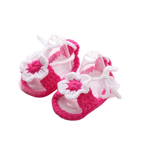 Kimanli Crib Shoes, Crochet Casual Baby Girls Handmade Knit Sock Flower Infant Pink