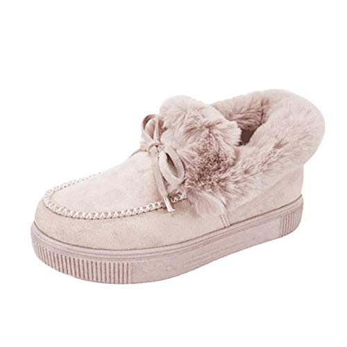 Casual Fashion Flat Boots for Women Cute Winter Warm Slip On Fur Lining Ankle Boots Thick Plush Snow Boots Durable Shoes