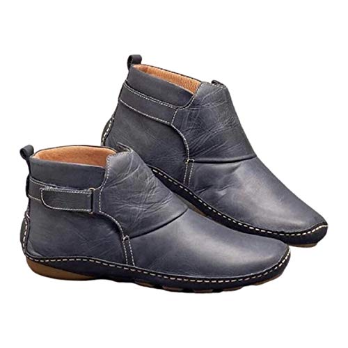 HEWYHAT FULLINO Arch Support Women Boots, 2020 Unisex Winter Ankle Boots, Leather Comfortable Flat Shoes, Warm Low Heel Walking Footwear, Non-Slip Snow Boots Casual Fashion Flat Boots,Blue a,8