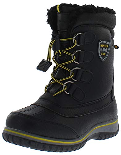 Weatherproof Kids Snow Boots with Elastic Lace Toggle Closure (Sleigh) All-Weather Insulated Winter Boots Built for Comfort, Durability - Keeps Feet Warm & Dry Black/Yellow, 3 Big Kid