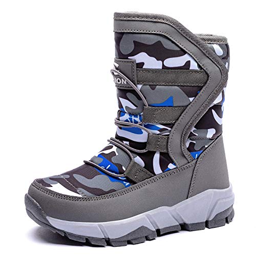 GUBARUN Boys Girls Snow Boots Winter Waterproof Slip Resistant Cold Weather Shoes(Grey c-Big kid7)