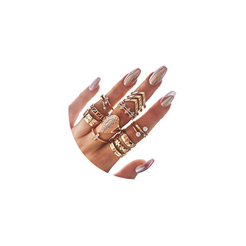 CSIYAN 6-16 PCS Knuckle Stacking Rings for Women Teen Girls,Boho Vintage Finger Rings Stackable Gold Silver Midi Rings Set Multiple Rings Pack Size 5-10