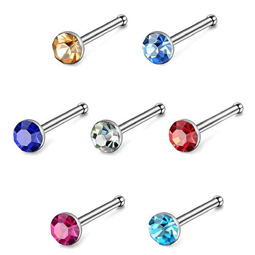 JewelrieShop 40pcs Nose Studs Stainless Steel CZ Nose Rings Stud Piercing Jewelry Bone Studs for Women Men Hypoallergenic 22G