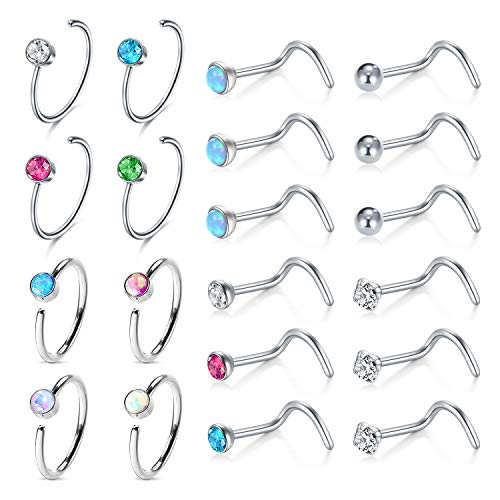 MODRSA 18G Nose Rings Hoop Surgical Stainless Steel Nose Rings Studs Screw L-Shaped Nose Stud Tragus Cartilage Helix Earrings Hoop Nose Piercing Jewelry for Women Set