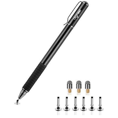 Digiroot Universal Stylus,[2-in-1] Disc Stylus Pen Touch Screen Pens for All Touch Screens Cell phones, iPad, Tablets, Laptops with 9 Replacement Tips(6 Discs, 3 Fiber Tips Included) - (Black)