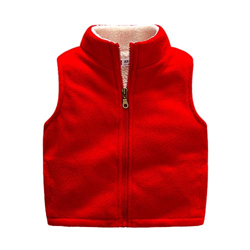 Warm Sweater Vest for Kids 3-10 Years in Autumn Winter and Spring, Solid Color Zipper Fleece Thick Sleeveless Jacket