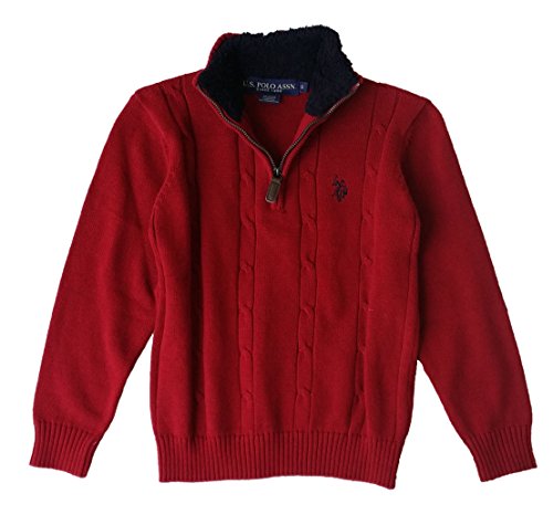 U.S. Polo Assn. 1/4 Zip Cable-Knit Sweater (Medium, Barn Red)