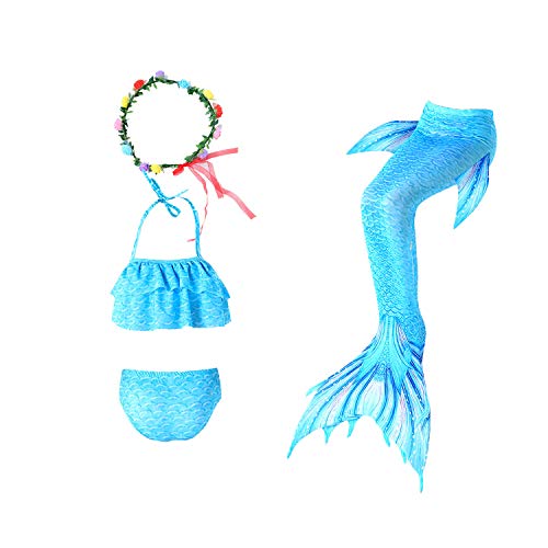 Cotrio 3Pcs Girls Swimsuit Mermaid Tails for Swimming Princess Costume Bikini Set Bathing Suit